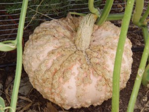 Archie has most of the seedlings for our garden in small pots in the greenhouse right now. Their names are on popsicle sticks. Names like delicata squash, space tomatoes (the seeds actually went into space), a bumpy winter squash called Galeux d’ Eysines (a french heirloom that gets bumps that look like warts – the more bumps, the higher the sugar content!). My girlfriend hates the look of this squash, but Archie and I like it. Archie told Sandi that he will scrape off the bumps to make it look more appealing to her! What do you think? Do you like the bumps or not?